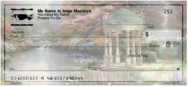 This specific check is made for someone who likes Superman and wants people to know that just because they have a Superman themed check doesn’t mean that they are Superman. People might get confused, so you want to make it clear that you aren’t the Man of Steel. You might also need some motivation, so there’s a picture of a boot with the words “Keep on Truckin'” which could remind you to keep walking or it could remind you that you’ll physically be kicked if you don’t get in a truck and start moving. The finishing touch is “Livin’ Large and Takin’ Charge” because when you spend thousands of dollars to buy a car you just don’t have the money for, you can think about your life motto and wish you had changed it to something more reasonable.