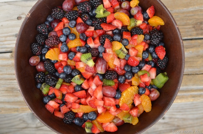 5. Fruit Salad made of Peaches/Nectarines, Strawberries, Blueberries, Blackberries, Mandarin Oranges, Red Grapes, and Bananas.